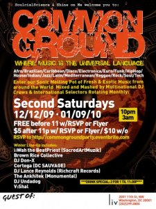 My Good Brother, DJ Iwah is hosting CommonGround which is also this Saturday. CommonGround is a U Street mainstay, occurring the second Saturday of every month. This multinational, collective of DJs is bringing you a melting pot of fresh and exotic music from around
