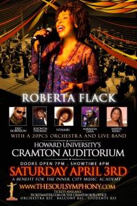 First up, the Soul Symphony concert. This show features an orchestra backing the legendary Roberta Flack, Eric Roberson, N’dambi, Navasha Daya and Rhonda Thomas performing soul classics and “neosoul” originals. This is going to be a night to remember.