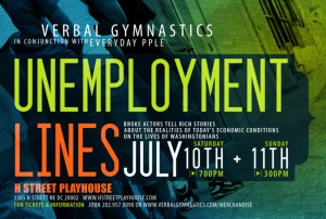 Talented playwright and friend, John Johnson will debut a new play entitled “Unemployment Lines”. This is the story where broke actors tell rich stories about the realities of today’s economic conditions on the lives of Washingtonians.