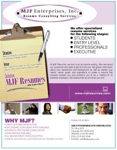 MJF Resumes is a Business & Professional Resume Consulting Service that provides resume, job search strategy, and interview preparation consulting services.