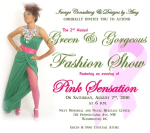 The 2nd Annual Green & Gorgeous Fashion Show Featuring an Evening of Pink Sensation takes place on Saturday. With this fashion show, green and pink are the featured colors (Did an AKA plan this event? 🙂 ). This show is a Charity Fundraiser for Breast Cancer Awareness. All ticket sales and private donations will benefit Susan G. Komen for the Cure, Circle of Promise. Guests will enjoy a plethora of treats for the senses including cocktails, music, art and fashion. Green and pink cocktail attire please. 🙂