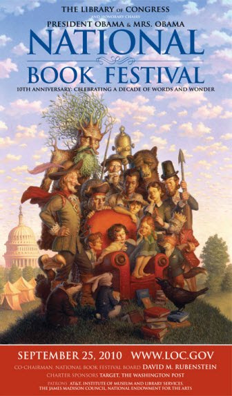 The National Book Festival, an annual event held each September on the National Mall, is a celebrating 10 years for the joy of books and reading is sponsored by the Library of Congress and gives attendees the opportunity to visit with more than 70 award-winning authors, illustrators and poets who will talk about and sign their books. National Book Festival Pavilions are set up for Fiction & Mystery, History & Biography, Children & Teens, Poetry, and Home & Family.