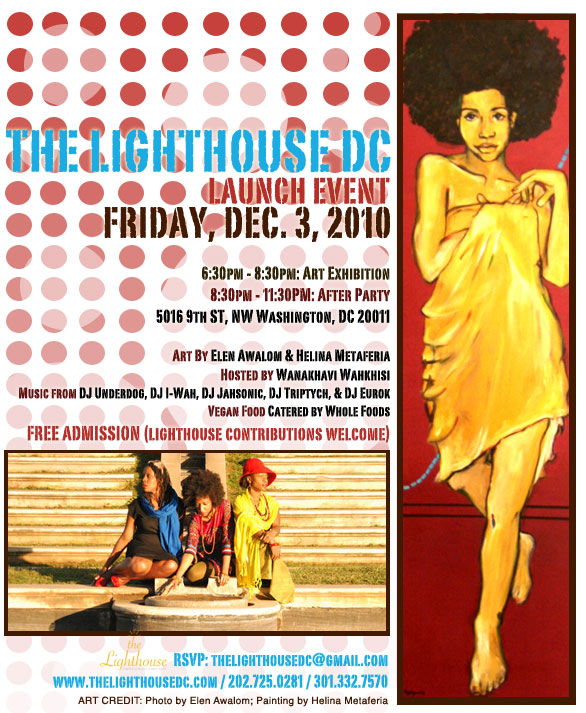Have an evening of art, wellness, and fun while celebrating the opening of The Lighthouse, a collaborative artist and healer community space. The Lighthouse hosts a variety of services, including private healing sessions, holistic workshops, poetry readings, healthy cooking demonstrations, photography shoots, art openings and more. The opening celebration will feature the artwork of Helina Metaferia and Elen Awalom. Light refreshments will be served. DC’s leading house, hip hop and soul pioneers, including DJ Jahsonic, DJ Underdog, DJ Eurok DJ I-Wah, and DJ Triptych, will spin throughout the evening.