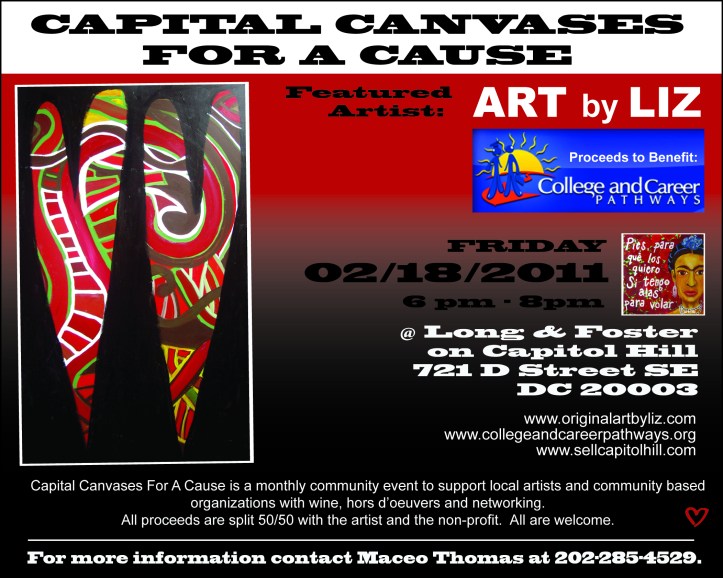 Come out to support a local cause and local artists with Capital Canvases for a Cause. There will be refreshments and drinks. All proceeds are split 50/50 with the artist and non-profit.