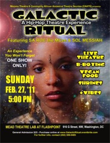 This sista can flow! SA-ROC, originally from Washington D.C. and now residing in Atlanta, represents all that hip-hop is missing especially the intelligent and hard-core feminine principle in these mediocre times in hip-hop music. SA-ROC recently released her full length project entitled, JOURNEY OF THE STARSEED, produced by SOL MESSIAH (dead prez, nappy roots, jay z, talib kweli). Theatre, video, dance, visual art, beats, rhymes, and tasty vegan cuisine will make this a night to remember!