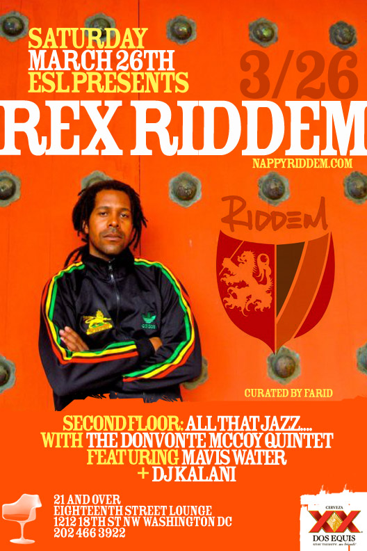 Rex Riddem, a Washington DC based DJ, producer, and percussionist known for his ability to traverse local and time through his eclectic tastes in music, will be headlining at ESL this Saturday. Cone check it out.