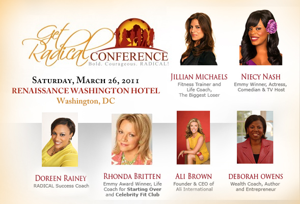 Join women from all across the country and RADICAL Success Coach Doreen Rainey for this dynamic and powerful one day women’s conference. This amazing day will provide real solutions to the challenges women are facing – in their finances, career, relationships, and life balance. Fitness Guru, Jillian Michaels and Comedian/ Actress Niecy Nash are featured the speakers. Local artist, Dionne will be opening the conference with a performance.