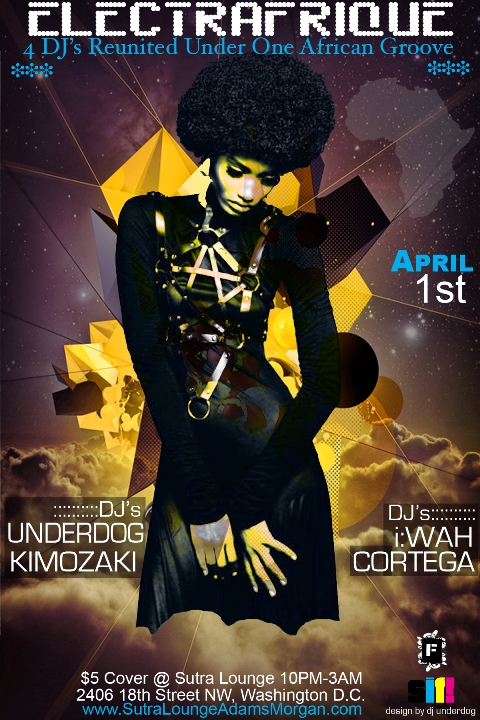 ELECTRAFRIQUE is a party that explores recent grooves of all types and flavors from or inspired by Africa. Think about msanzi house, coupe decale, kwaito, kuduro, zouglou, as well as of course classic afrobeat, funk and deep/souful house cuts… This is moving music, and music for moving… So come and ride the rhythm with us!