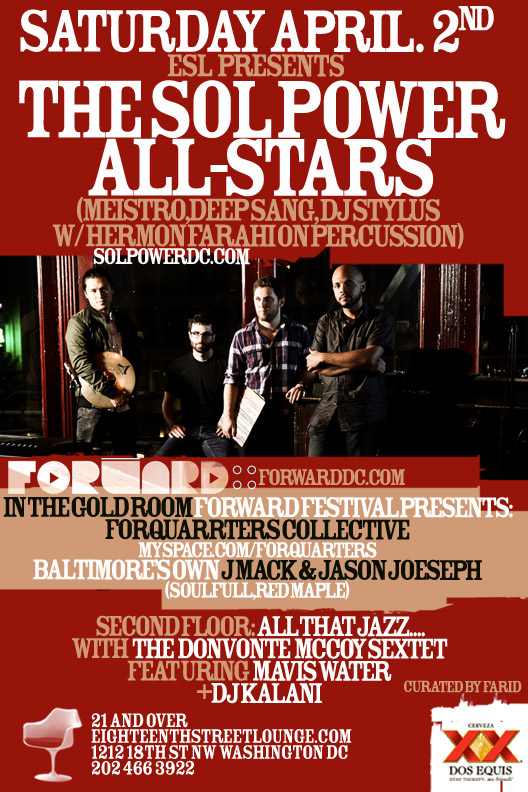 Washington, D.C.’s five day festival celebrating electronic creative culture – music, art, and new media. Entering its fourth year, FORWARD 2011 will continue a tradition of bringing artists and attendees’ cutting edge programming centred on live performances, art exhibitions, and workshops. Through electronic creative culture, FORWARD aims to unite artists, attendees, and the greater D.C. community in cultivating a caring, conscious society interested in pro-actively pushing things forward. To this end, FORWARD 2011 will include workshops and service events that provide a place for sponsors to showcase their products and give industry professionals and participants a place to interact and collaborate.