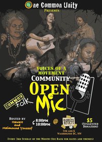 “Voices of a Movement” is your chance to take the stage and share your story through music, spoken word poetry and other artistic mediums. And if performing is not your thing, simply come and listen. Every month, a different issue facing the community is highlighted. This month’s topics are unemployment and alternative economies. But you’re welcome to bring work about any topic which concerns you to share. Come early and sign up for the open-mic. One Common Unity proudly presents this event in partnership with Busboys and Poets, the DC Employment Justice Center and DC Jobs with Justice. Co-Hosts: HawaH and Maimouna Youssef