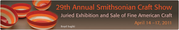 Widely regarded as the country’s most prestigious juried exhibition and sale of fine American craft, the 29th Annual Smithsonian Craft Show opened this week in the historic National Building Museum in Washington, DC. Exemplifying innovation, creativity and technical merit, each of the 120 exhibitors reflects the story of contemporary American craft in one of 12 categories: basketry, ceramics, decorative fiber, furniture, glass, jewelry, leather, metal, mixed media, paper, wearable art and wood. Bid online for items here.
