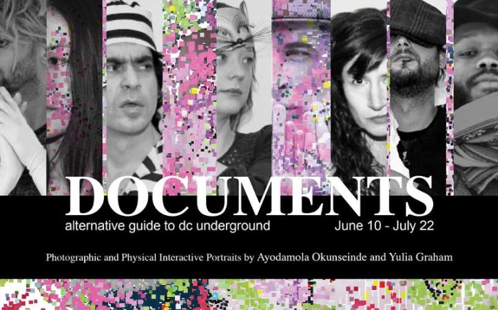 “DOCUMENTS: alternative guide to dc underground” is a collaborative project between Ayodamola Okunseinde and Yulia Graham investigating subjects of identity through photographic and physically interactive portraits. Based on the likenesses of artists from the DC metro area, the objective of this project is to chronicle connections between artists, their environment, personalities and work through portraiture. The pieces in DOCUMENT range from black & white digital prints to installations where the audience in directed to play a part in the presentation of the portraits. The collective works of the project also serves as a selected educational archive of the dc underground art scene in the recent years.