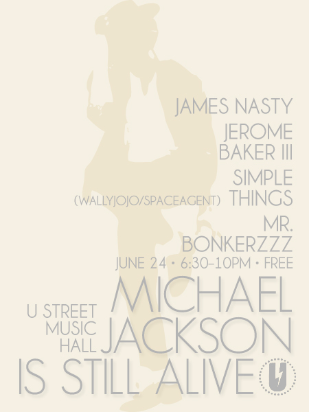 Local DJs continue to keep MJJ’s memory and music alive the Friday night. Expect rare cuts, remixes and party jams courtesy of Jerome Baker III, James Nasty, Mr. Bonkerzzz and the Simple Things team of Wally Jojo and the Space Agent.