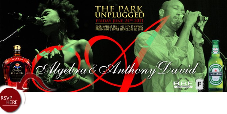 This week The Park Unplugged welcomes two Georgia natives to the Park Unplugged stage. Getting his start in the music industry with a little help from a special friend India Arie, R&B sensation Anthony David has continued to impress the world with his combination of R&B and neo-soul music. Partnering with songstress, Algebra, their recent single ‘4Evermore” helped David achieve his goal of a top 20 R&B hit.