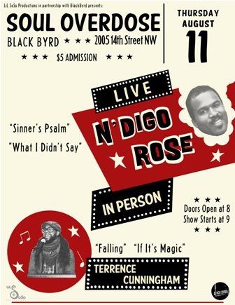 If you haven’t visited the newest restaurant, Blackbyrd (2005 14th St NW) off of U Street, this is a great opportunity to do so. Soul Overdose will be featuring N’Digo Rose and Terrance Cunningham. Show starts at 9PM and it’s only 5 bucks!