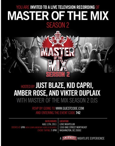 And if you are a fan like me, then you should head over to Love (1350 Okie St NE) for the D.C. taping of Master of the Mix. Since space is limited, they are only letting in a few folks because space is limited. And you have to know the code to get in! 🙂