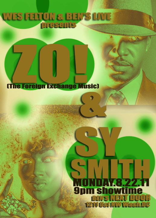 Wes Felton & Ben’s live presents: An Intimate Night with Zo! + Sy Smith. It will be an acoustic session that features Sy Smith on vocals while Zo! accompanies her on keys. Tonight (8/22) at 8PM, Ben’s Next Door, 1213 U St. NW.