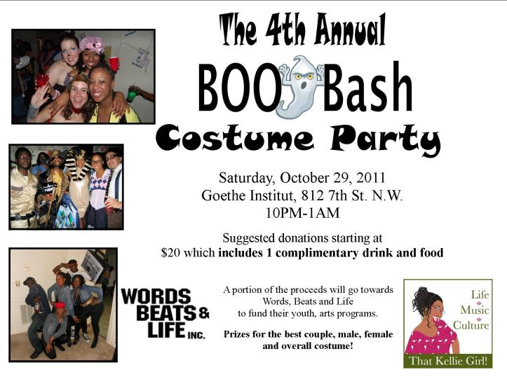 Come out to the 4th installment of the Boo Bash Costume Party. This year we will be partying with a purpose. The Boo Bash will also be a fundraiser for Words Beats & Life, Inc. A portion of the proceeds will go to towards their SCHOLARSHIP FUND!