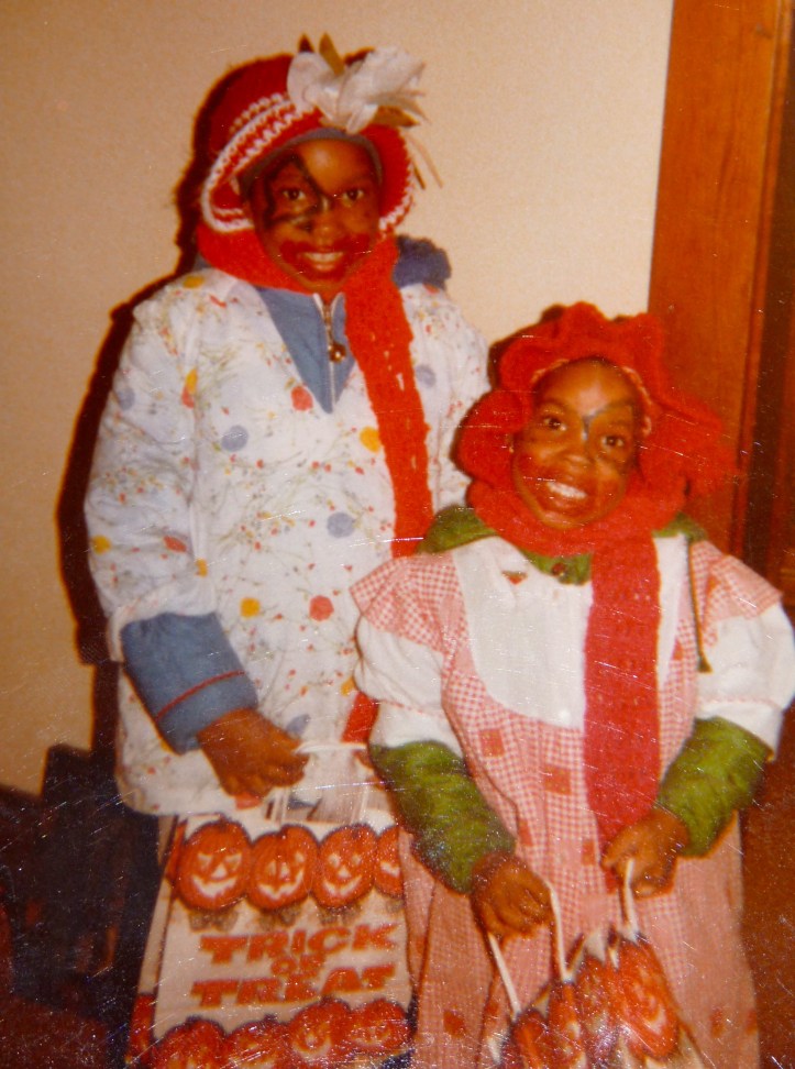 And tonight, the kiddies will be out for Halloween. I always enjoyed Halloween as a kid.  Back in the day, we didn’t have the luxury of buying costumes (as you can see in the picture above).   We used our creativity to come up with costumes.  Besides, it was really about the candy! 🙂  I loved walking around the neighborhood and meeting up with my cousins and friends.  We would give each other the heads up  about which houses gave out the best candy.  And you felt like you hit the jackpot if someone gave out WHOLE chocolate bars. I didn’t realize it as a kid, but I just enjoyed the community fellowship.  And this evening, I want to foster that community spirit, so I will be giving out candy to the kids in my neighborhood. And I am quite excited!