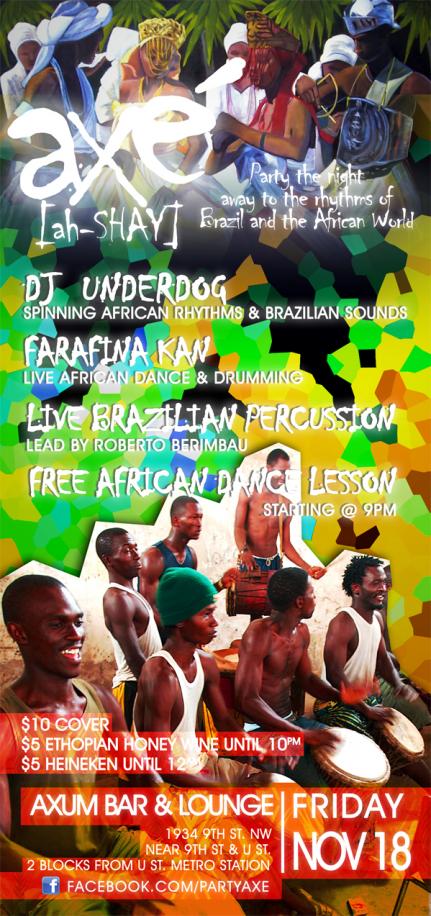 Come dance the night away at AXÉ (ah-SHAY), a magical night of music and movement from across the Afro-Brazilian World.