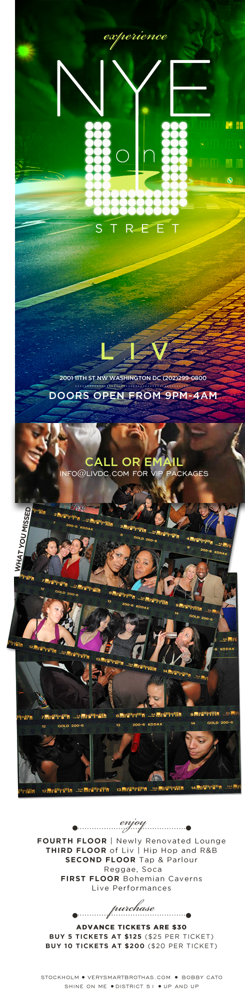 NYE ON U STREET!….Don’t miss this year’s NYE event where there will be something for everybody on every single floor! There will be live music on one floor, and DJ’s spinning reggae/soca on another floor, and hip-hop/R&B on the top two floors in Liv Nightclub. A champagne toast at midnight of course.