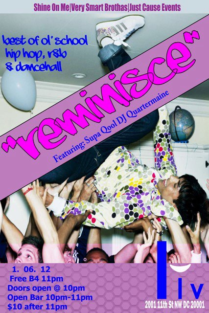 Come join VSB x Shine On Me x Just Cause Events for REMINISCE this Saturday. They’re bringing you that same old school hiphop/r&b vibe that keeps the walls shakin’ and the party thumpin’. With Supa Qool DJ Quartermaine on the 1s and 2s, you know we gonna stay fresh and dressed like a million bucks for that low-low.