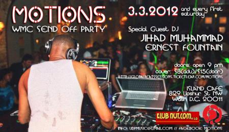 MOTIONS the new monthly party created by Ernest Fountain (KLUBNUT.COM) and Andrew Hogans (Global Beats Sessions) this party aims to bring the basics back to dance music parties. Come out to the first installment with special guest DJ JIHAD MUHAMMAD and resident Ernest Fountain for our Winter Music Conference send off party.