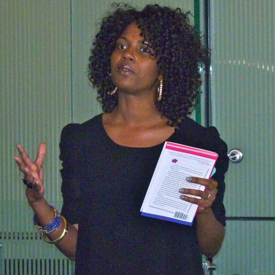 Creator of the Baby Bash and Bling Expo and Show, Monica Byrd speaking to guests at the media reception.