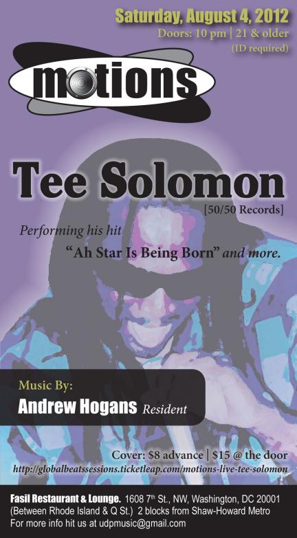 For the month of August the Motions Family welcomes our very special guest Tee Solomon, performing his dance floor hit “Ah Star Is Being Born” and more. House, Deep House, Neo Soul, Afro Latin vibes