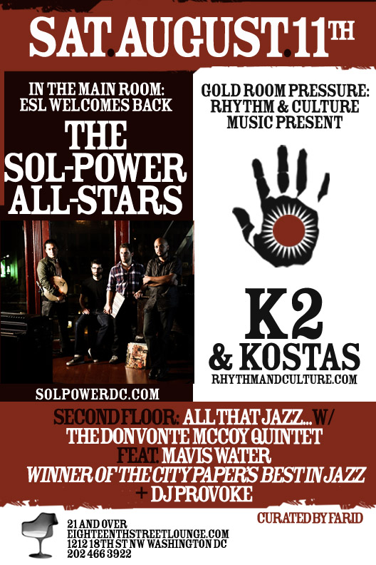 The Sol Power All Stars are back at ESL to bring you the best in world music. Come dressed to sweat!