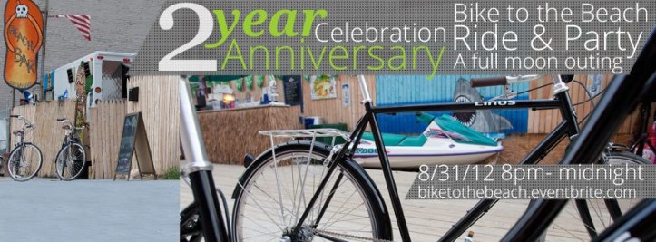 It’s been two years since BicycleSPACE opened and we want to celebrate with you. We are inviting everyone to join us for another Full Moon Outing as we ride through the city on a pleasant summer night . After the ride, we are hosting an Anniversary Bash at the NY Ave Beach Bar. This Blue Moon, we will Bike to the Beach!