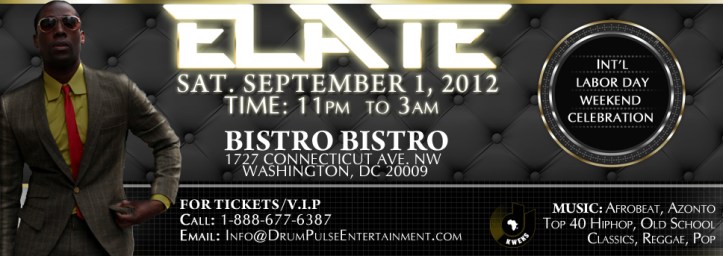 By popular request, DrumPulse presents “ELATE – The Official Labor Day Weekend International Celebration” featuring DMV’s favorite international DJ(DJ Kweks) and other guest international DJs. Your are specially invited to this ultimate international shindig. Come and socialize and party with some of the best minds in the DMV. Music: Top 40 Hiphop, Top African hits(Azonto, Nigerian Hiphop, Highlife, Coupe Decale, Makossa, Afrobeats, Kwaito, etc), Dancehall Raggae, House & Pop