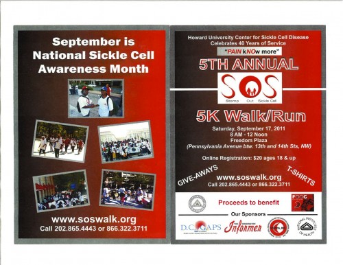 Over the years, over 1000 walkers have participated in the Stomp Out Sickle Cell 5K Walk. This year is the sixth annual walk , and proceeds will benefit the Howard University Center for Sickle Cell Disease and Faces of Our Children, Inc.
