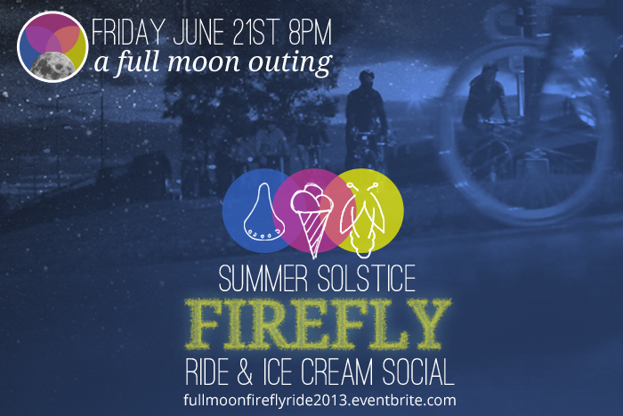 The Full Moon will be out Friday so it’s time for another Full Moon Outing– one of a series of rides Bicycle Space hosts this summer. Join them for a flight through the city to enjoy simple pleasures on a calm night. After meeting at the shop, the moonlight will guide our brilliant swarm through the city. The ride will go at a casual pace covering roughly 10 miles and will finish with a grand spread of ice cream and fixins’ for making sundaes. It will be a perfect way to cool off as the Full Moon coincides with the Summer Solstice.