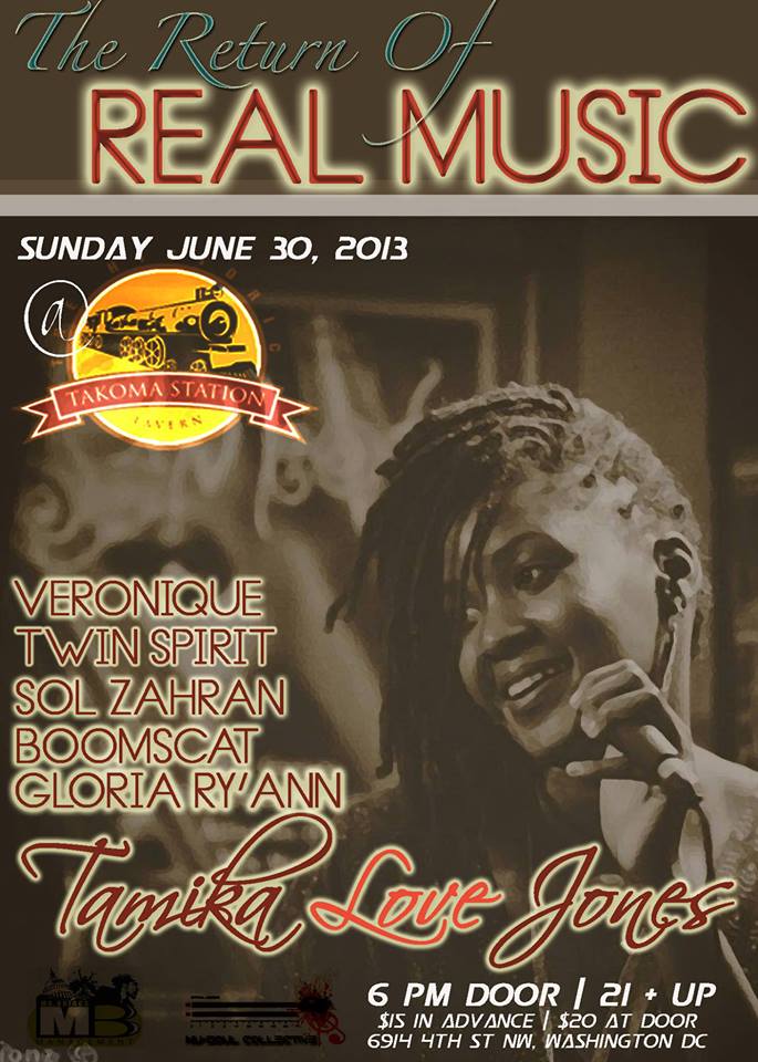 Briggs Management & Enterprises has created an event for the public to enjoy, but with a new partnership with Takoma Station Tavern in the works, its time to bring back great music, quality shows and mature clientele all to the same place. Starting the last Sunday in June, we will aim to bring you the best the city has to offer in live entertainment. The first event in this series The Return of Real Music, features the prominent return of two of the most soulful, genuine spirits in the independent industry, Gloria Ry’ann & Tamika Love Jones.