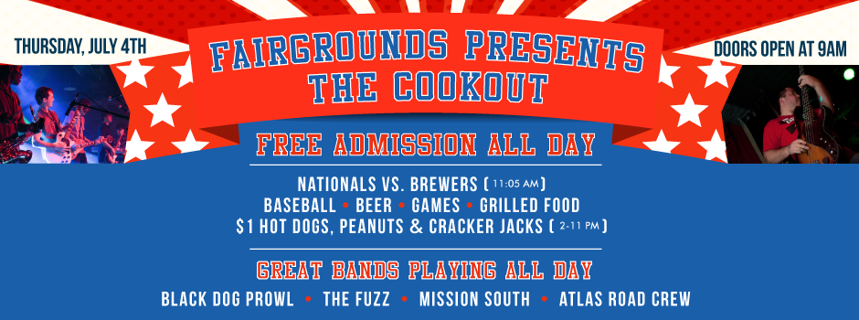 With the Nationals playing at home on the morning of July 4, the Fairgrounds is going to be a popular destination between the final out and the fireworks. The huge lot, located directly across from the Navy Yard-Ballpark station, will feature local bands on its stage all day, and an all-American menu of hot dogs, peanuts and Cracker Jacks for $1.
